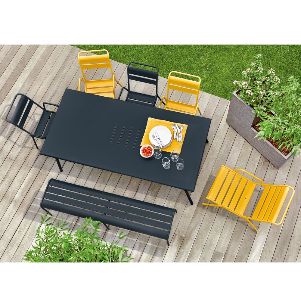 Banc Fermob Monceau XL Acier L160 cm Carbone – Mobilier de Jardin Haut de Gamme – Banc de Jardin Parisien Moderne et Coloré